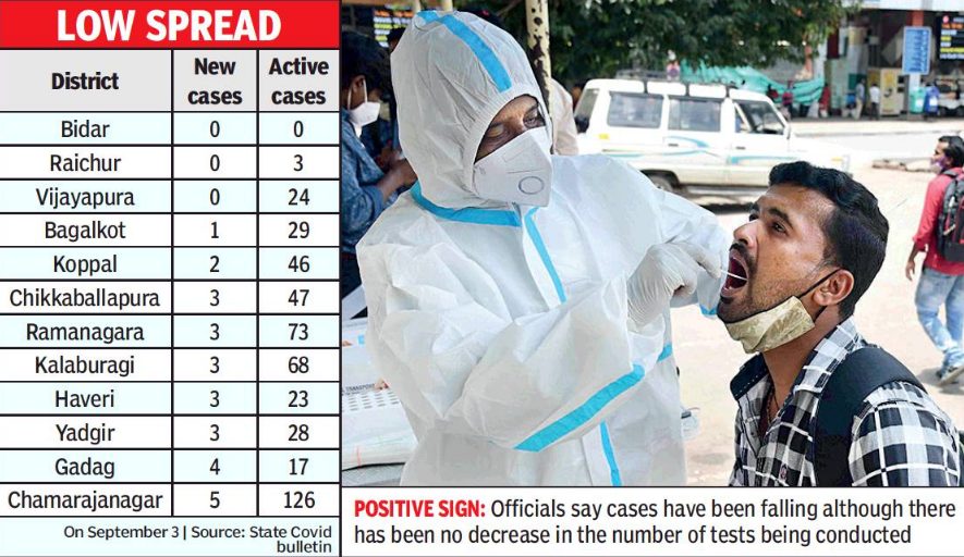 The drop in daily cases in these districts has significantly contributed to a fall in the state’s overall numbers. However, some experts say testing and tracing must be beefed up in districts that report zero cases. But Dr Manjunath says there has been no let-up in testing at all. The positivity rate in these districts is less than 0.1%.