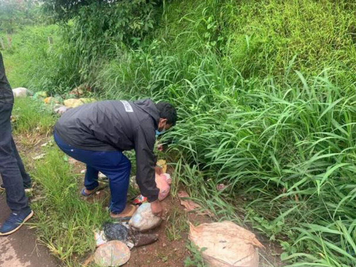 On Sunday, a local spotted a man arriving on a two-wheeler and dumping a gunny bag full of waste near Sankesha Junction. When stopped, the man identified as Badruddin Irfan, reportedly scolded the local person and prevented him from taking pictures. However, the person managed to take a picture of his vehicle.