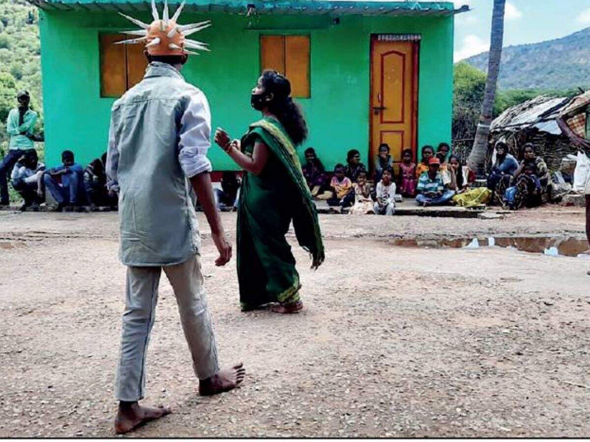 The community has more than 30,000 members in Chamarajanagar district, and has seen 40 Covid cases, including two deaths. The play, written and performed in the Soliga tribal language, features 10 characters and songs based on folk traditions. ‘Soliga Pushmale Kalasangha’, a tribal art club, enacts it.