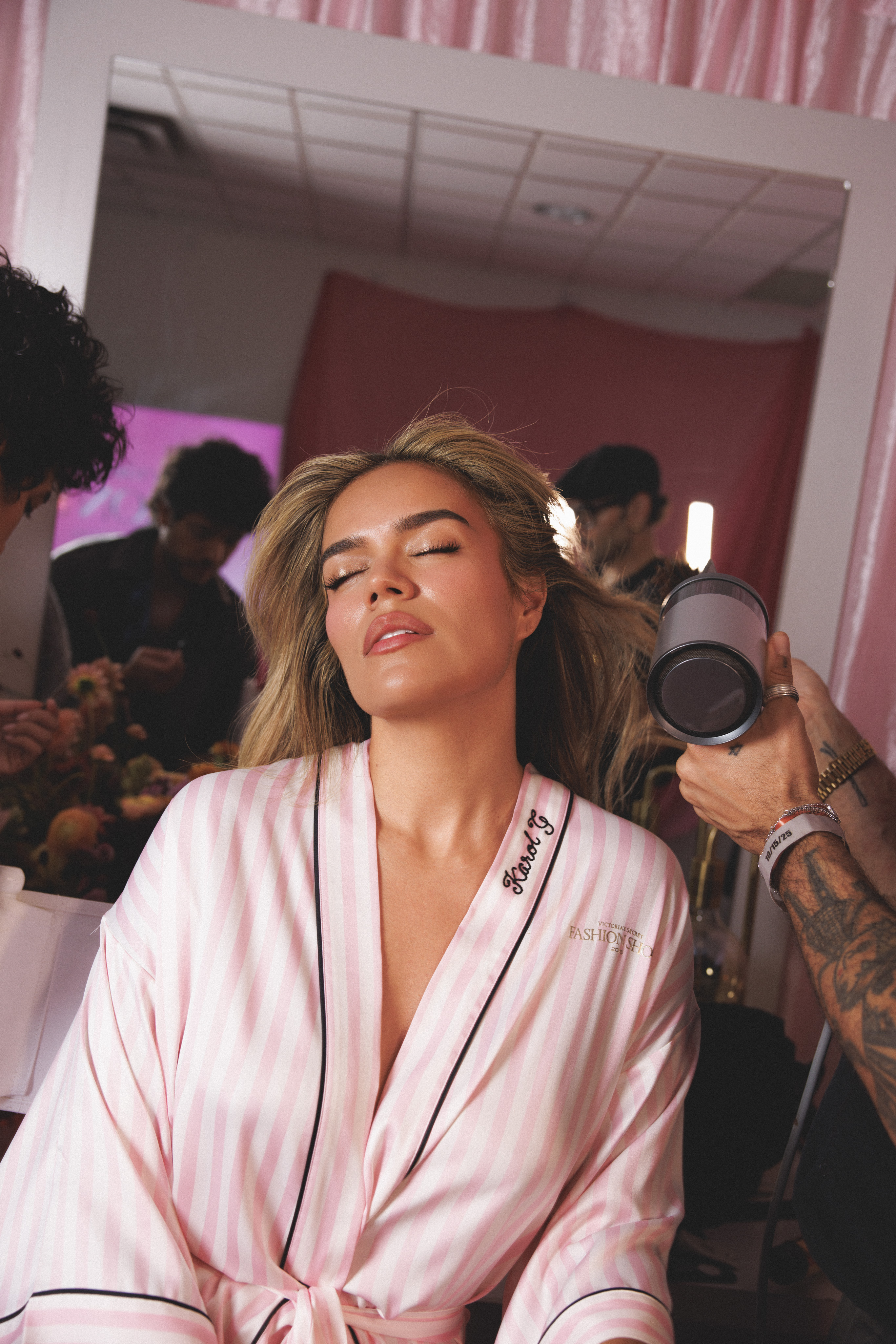 Her onstage beauty takes a similarly strong-but-soft balance. She modified the Angels' bombshell blowouts in favor of effortless, undone waves. (Karol G describes them as exuding "ocean energy.") "Radiant" could also apply: "My makeup had hints of gold and sun—a reflection of how I feel right now. "