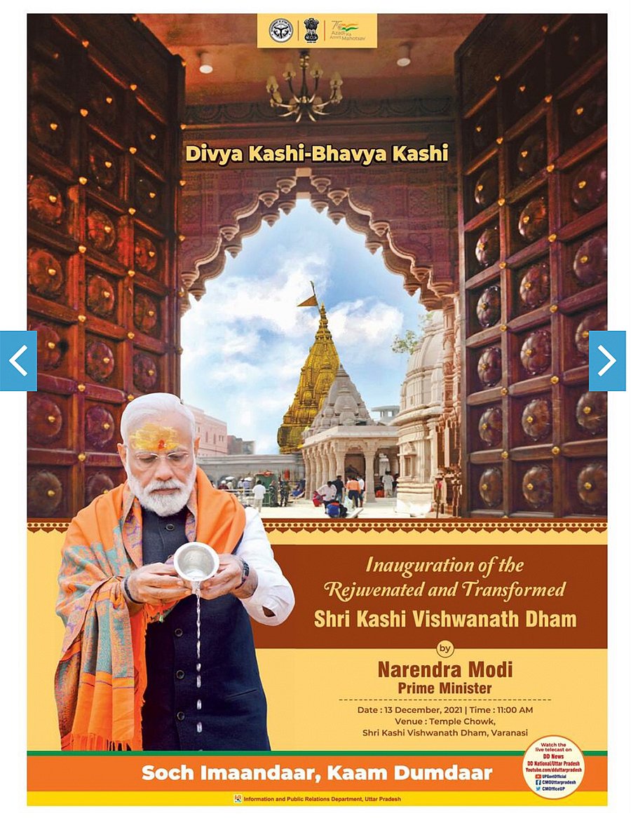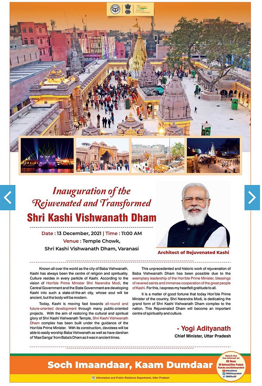 These are opening lines in an opinion piece by Uttar Pradesh CM Yogi Adityanath in the Hindustan Times today, about PM Narendra Modi’s inauguration of the Kashi Vishwanath corridor in Varanasi which links the river Ganga to the Vishwanath Temple.