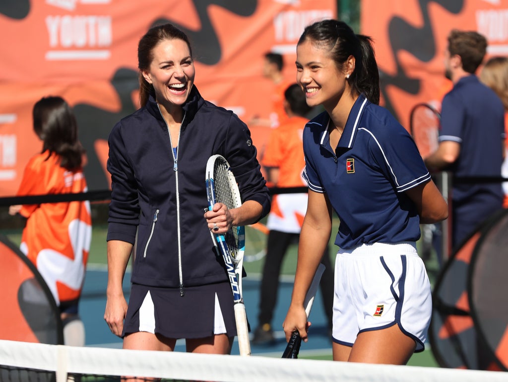 Photographs from the event show both Raducanu and Kate in navy blue and white tennis gear, laughing and smiling at one another as they play.
