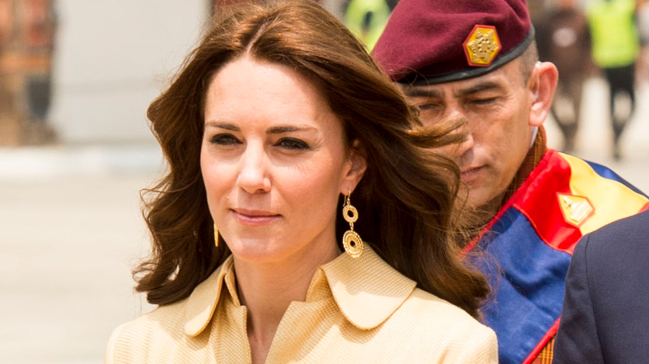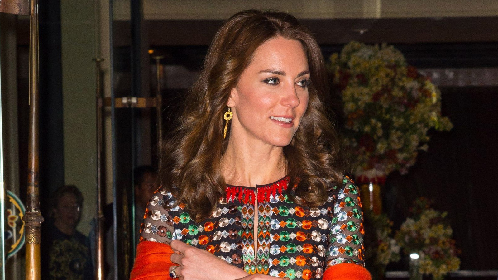 Later on in the day, she and William attended a dinner with King Jigme Khesar Namgyel Wangchuck and Queen Jetsun Pema of Bhutan and she went for something a little brighter and more fun. The Princess stepped out in a Tory Burch floral mesh gown and fiery orange shawl draped around her shoulders and strappy black heels.