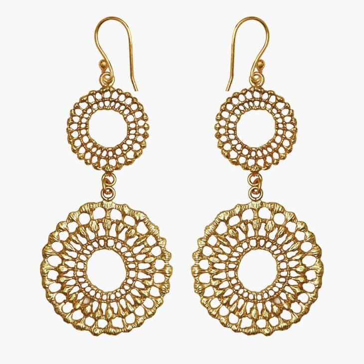 This 2026 update on the Princess of Wales's earrings is equally beautiful and versatile, with the double circle design. They're handmade and crafted from 22k gold plated brass, with gold plated sterling silver hooks.