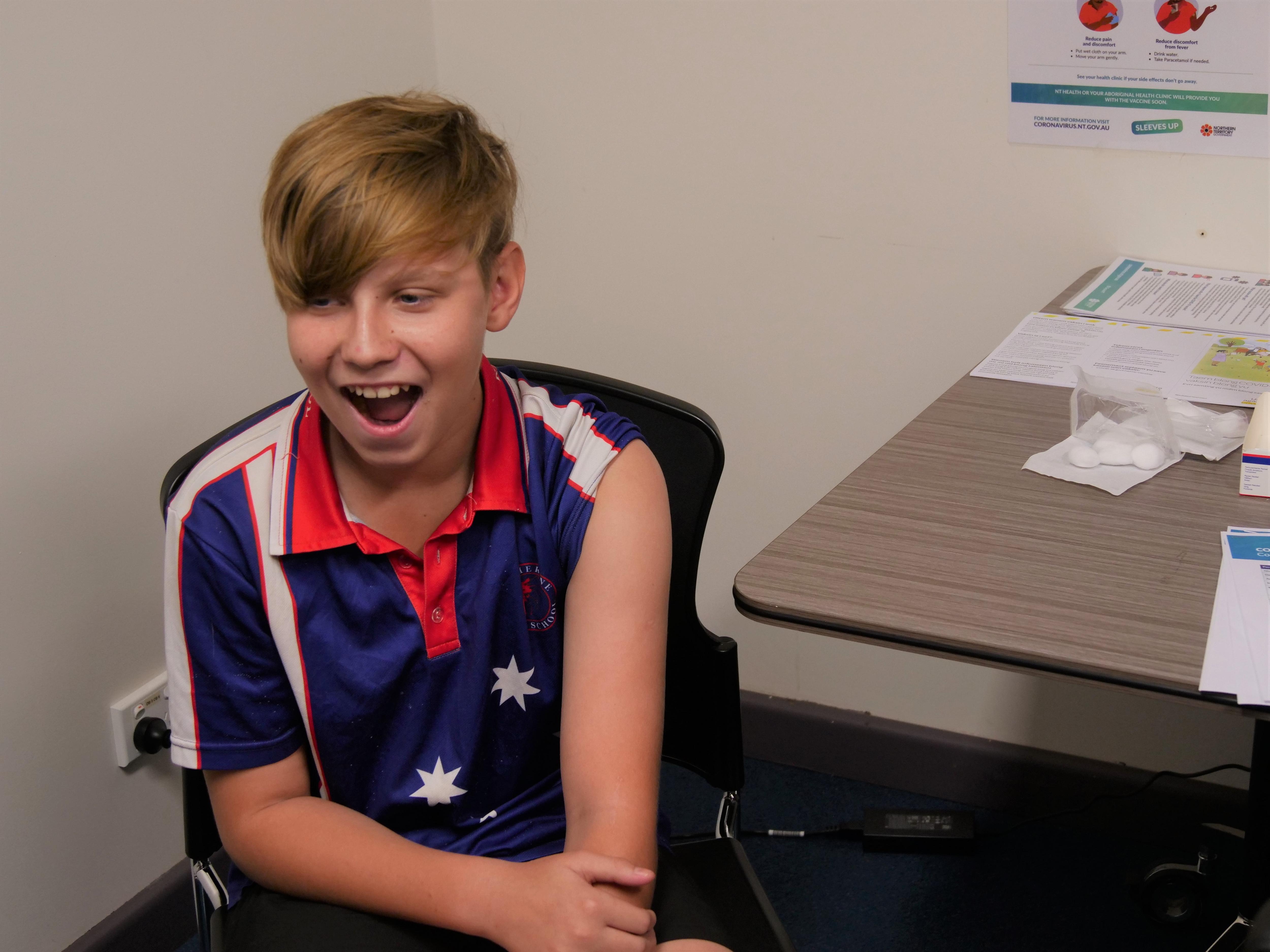 Shamiah, 16, and her brother Xzander, 12, rolled up their sleeves at Katherine's COVID-19 vaccination clinic.