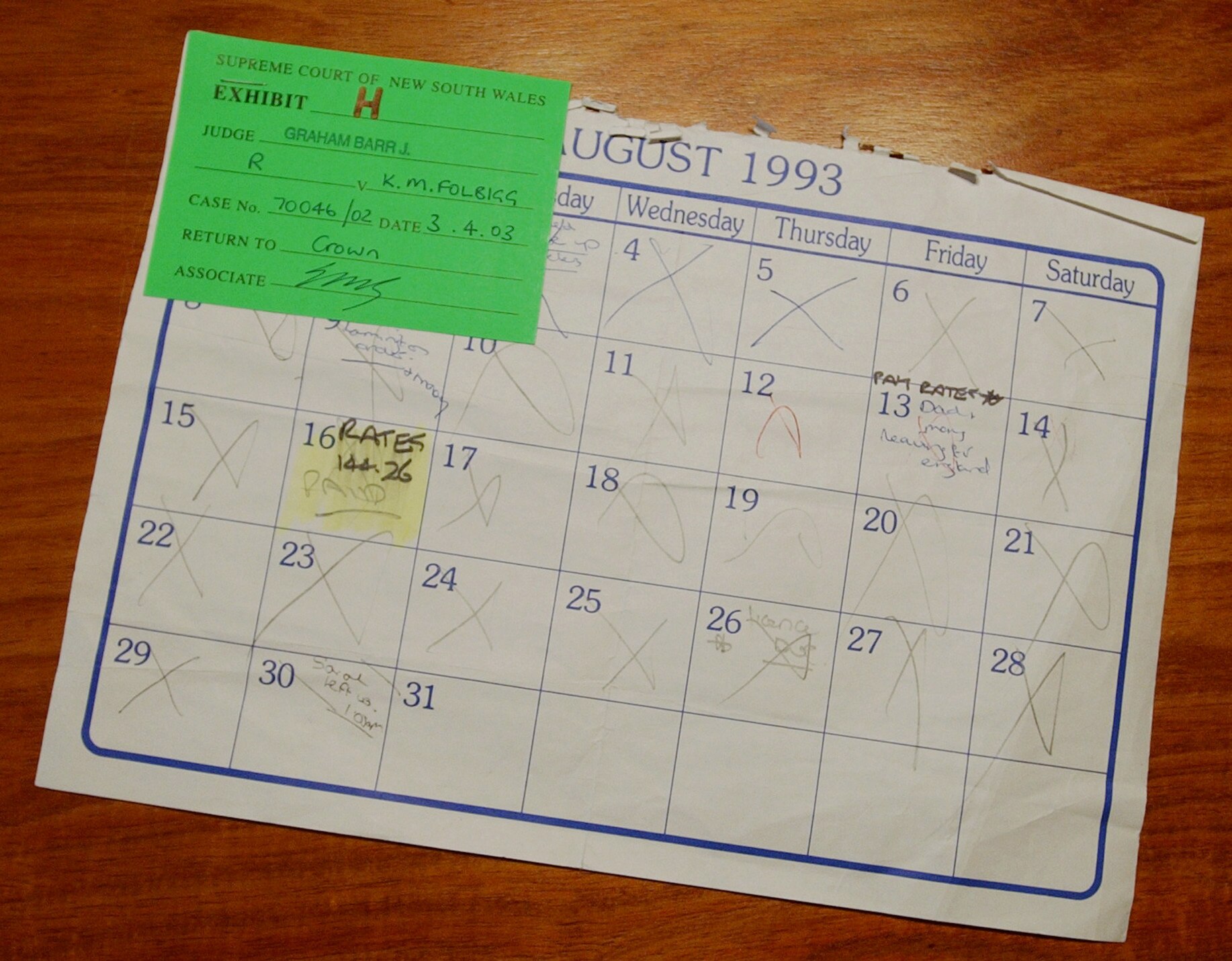 On 28 January 1998, Folbigg wrote: “Very depressed with myself, angry & upset – I've done it. I lost it with her. I yelled at her so angrily that it scared her, she hasn't stopped crying. Got so bad I nearly purposly dropped her on the floor & left her.