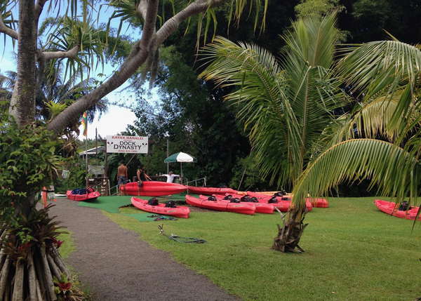 You could easily spend your days lolling in a hammock or splashing in the gentle waves in the summer _ or surfing the giant winter waves at the outer reefs. But we can't resist the Dock Dynasty sign, nor the scarlet kayaks poised on the Hanalei River bank in such alluring, aquatic style. Within minutes, we're underway on the water.