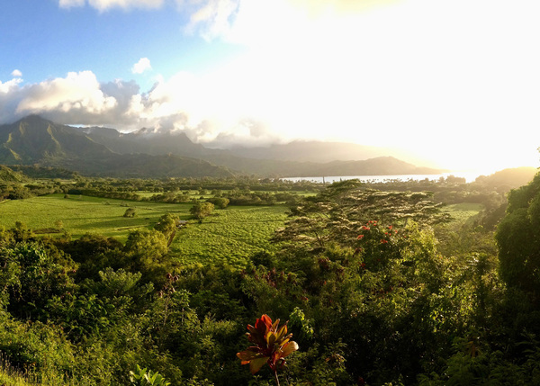 Green and lush, the landscape unfurls as you round that final bend and Hanalei Bay comes into view. Craggy volcanic ridges descend to the glistening sea, like a dragon coming to rest, and we are spellbound.