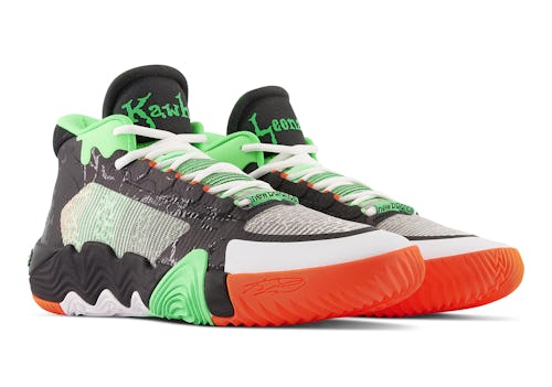 “Kawhi Leonard” is spelled out across the two tongues in Goosebumps’ signature creepy font, and the insoles sport more co-branding from the series, Leonard, and New Balance. The latter also offers a touch of branding at the edge of the laces and on the heel in the lime green shade. To round out the design, a “2” and “II” are etched into each respective heel, nodding to his Los Angeles Clippers jersey number and the sneaker model.