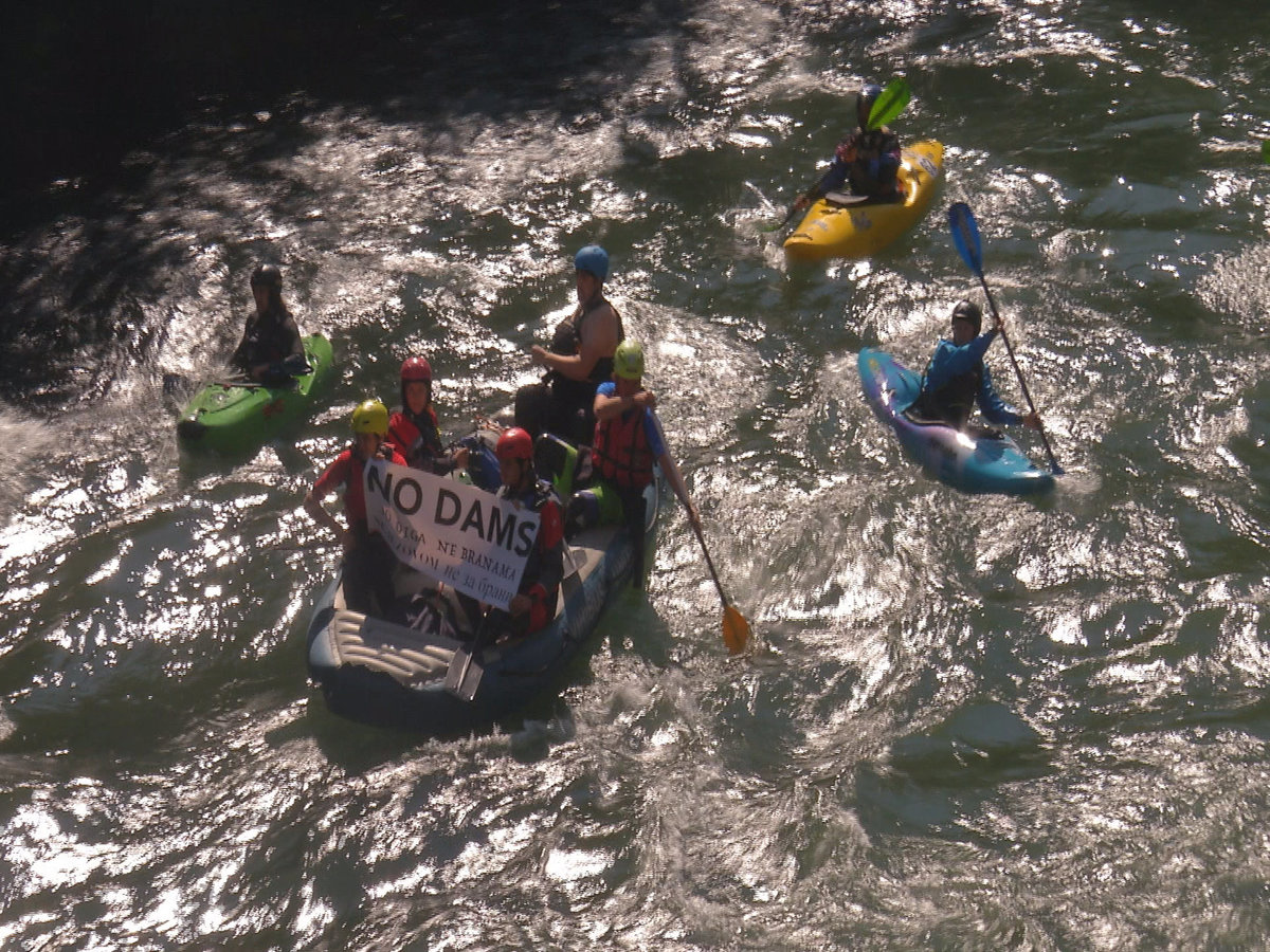 The kayakers joined activists and local people who have been campaigning for years against plans to build two new hydroelectric power plants on the Vrbas river.