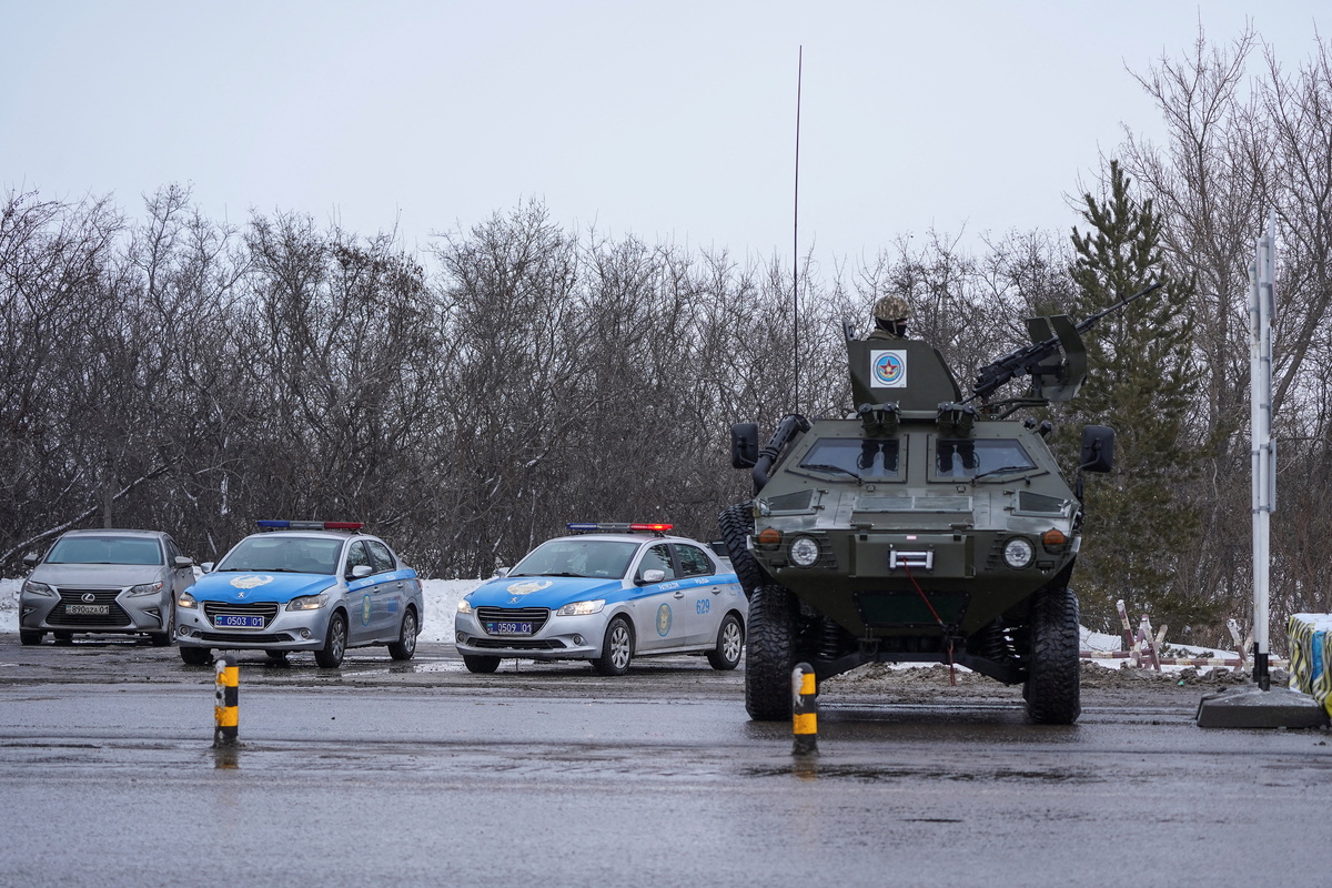In the capital Nur-Sultan, Reuters filmed police stopping drivers at a checkpoint with armed soldiers nearby.