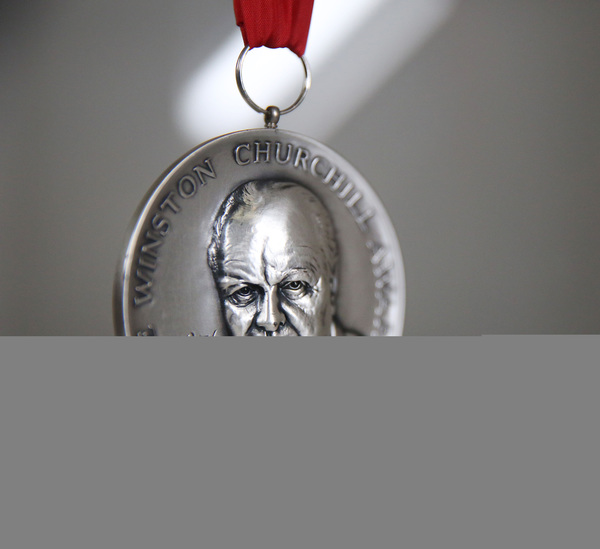 Inside hangs the Winston Churchill Award he was given in 1986 for epitomizing the spirit of Britain's most famous statesman.