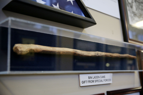Photos and portraits of his family and heroes. Osama bin Laden's cane, given to him by two members of the U.S. Army Special Forces who helped bring down the terrorist. Scores of whimsical and inexplicable gifts alongwith Gilbert Stuart's iconoclastic portrait of George Washington.