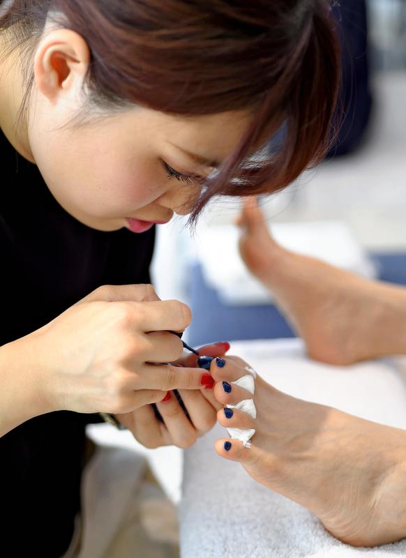 Many customers at the Longleage nail salon in Hiroo, Tokyo, get its pedicure course at this time of year, according to the salon. This 90-minute package, including exfoliation and toenail care, is priced at 10,000 yen excluding tax.