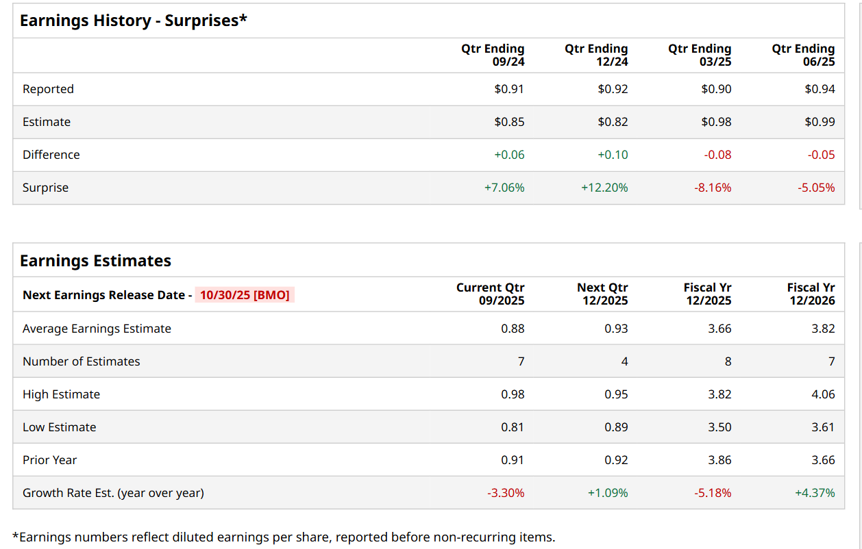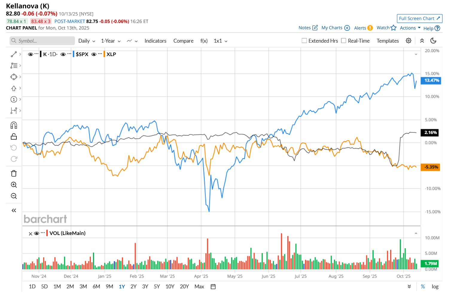 Chicago, Illinois-based Kellanova (K) manufactures and markets snacks and convenience foods. Valued at a market cap of $28.8 billion, the company owns various well-known brands, including Pringles, Cheez-It, Pop-Tarts, Eggo, MorningStar Farms, and RXBAR, among others. It is expected to announce its fiscal Q3 earnings for 2025 before the market opens on Thursday, Oct. 30.