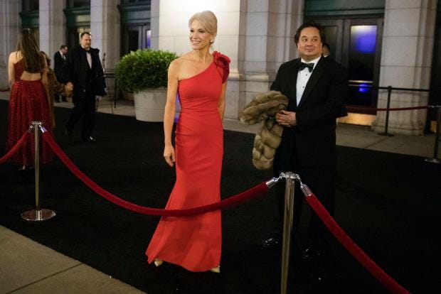 "Just to be clear, and in response to inquiries, I still VERY, VERY STRONGLY support POTUS, his Admin, policies, the executive order ... and of course, my wonderful wife," Mr Conway tweeted.