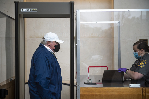 Michael Skakel arrives through security at Stamford Superior Court Friday, Oct. 30, 2020, in Stamford, Connecticut. Skakel is back in court, 45 years to the day after the murder of his teenaged neighbor in Greenwich, Martha Moxley. (Kassi Jackson/Hartford Courant/TNS)
