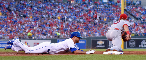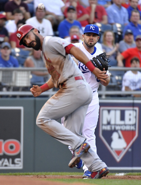The number of Cardinals fans did not eclipse the home fans on a cool evening in Kansas City, yet the proliferation of red did lead to some strange sounds during a fourth-inning debacle in which Royals starter Ian Kennedy struggled to throw strikes and shortstop Alcides Escobar and catcher Drew Butera made costly errors. By the end of the inning, the Cardinals had put up six runs, and the Kansas City defense had malfunctioned again. The Royals (57-54) will look to even the series here on Tuesday night before heading across the state of Missouri on Wednesday.