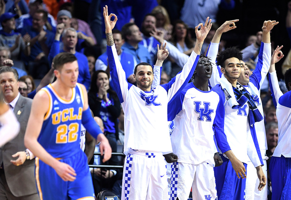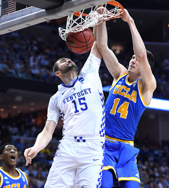 UCLA (31-5) shot 63.0 percent in the second half only to watch its halftime deficit grow from three points into double digits. The reason was Kentucky's glut of easy baskets and the Bruins' surplus of turnovers. Even one of the Wildcats' misses didn't go UCLA's way when Monk missed a deep three-pointer only for the ball to deflect out of Alford's hands out of bounds.