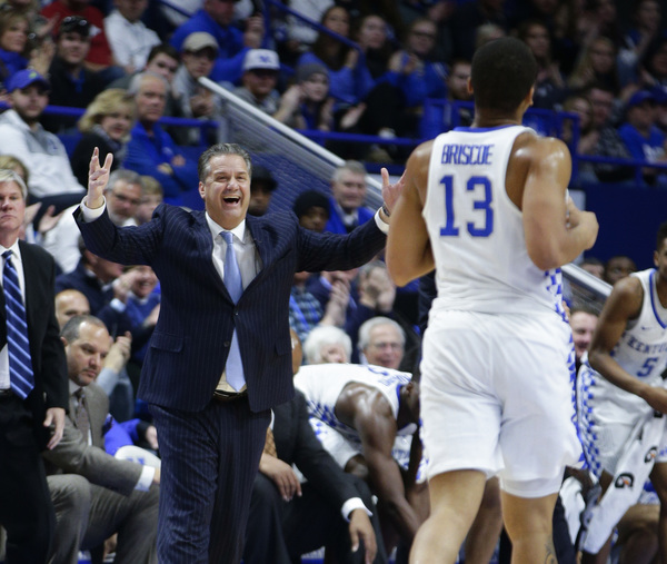 But with 4:01 left, Briscoe drove and put extra height on the shot. It banked in to push UK's lead to 32-24. That came near the end of a 12-0 UK run. The shot prompted an Arkansas timeout and moved Calipari to come onto the court and greet Briscoe as the UK player approached the bench.