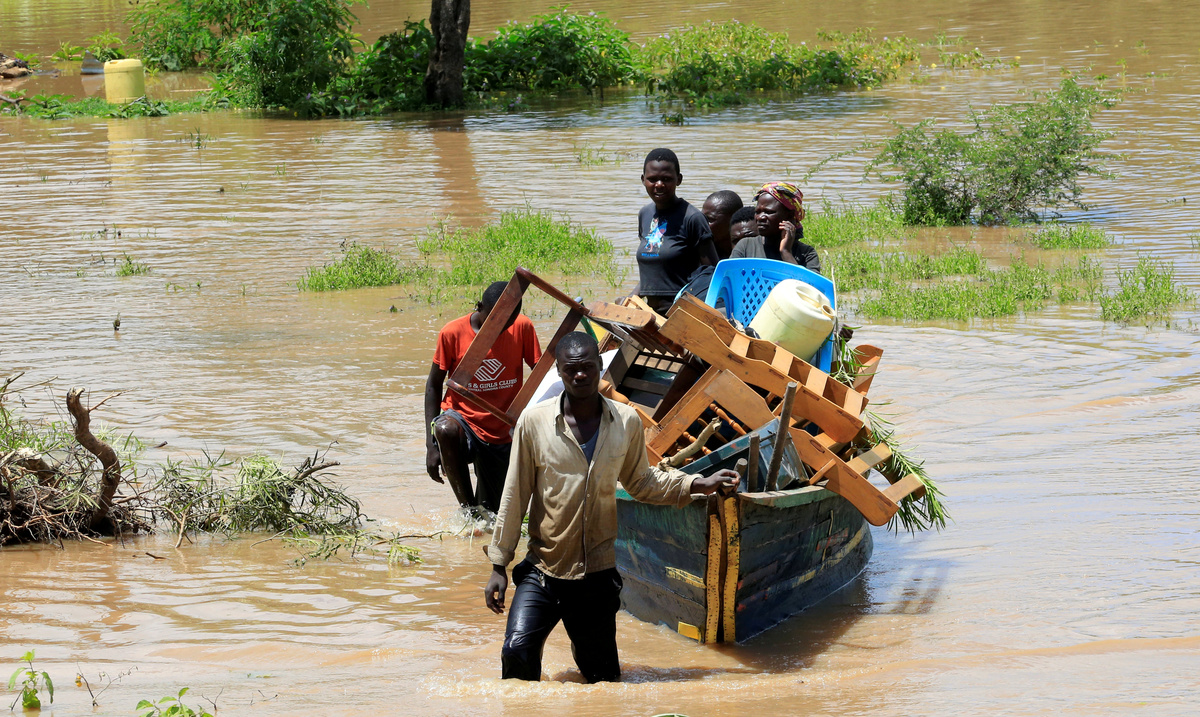 In Budalangi, western Kenya, residents have had to carry their belongings away from their submerged houses using boats and motorbikes, after the River Nzoia burst its banks, spilling over the land for miles around.