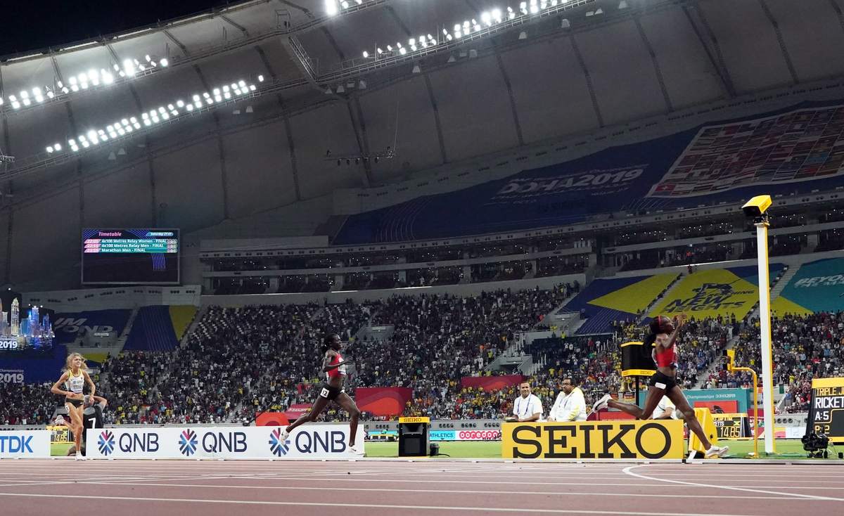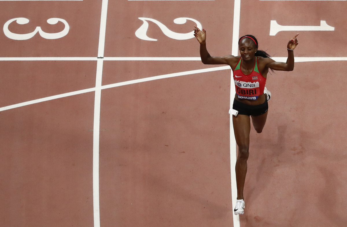 DOHA (Reuters) - Hellen Obiri of Kenya displayed her dominance of the 5,000 metres at the world athletics championships on Saturday by winning a second consecutive world title in a tight race at Khalifa International Stadium.