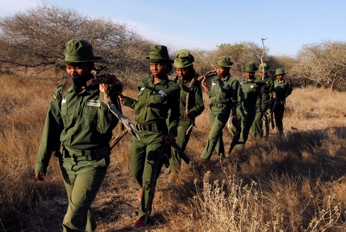 The women, who patrol unarmed, captured the two men armed with bows and arrows and handed them over to rangers from the government-run Kenya Wildlife Service.