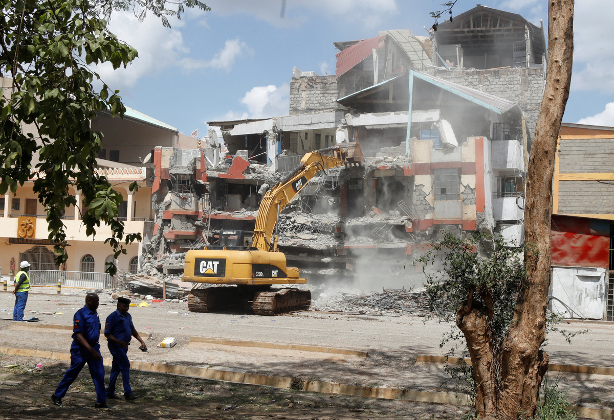 Rushing outside he found his parents' corrugated metal home crushed underneath a five-floor apartment block that had collapsed in the Kenyan town of Ruaka while they were sleeping.