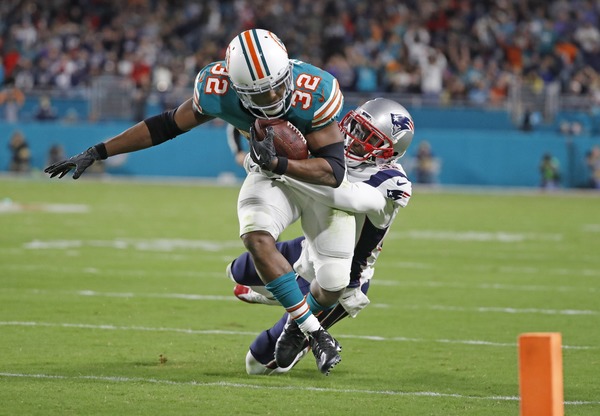 Howard had a pair of interceptions against New England quarterback Tom Brady (one touchdown, two interceptions, season-worst 59.5 passer rating) which Miami turned into 10 points. Drake, the big-play threat, had his second 100-yard rushing effort of the season, and his career.