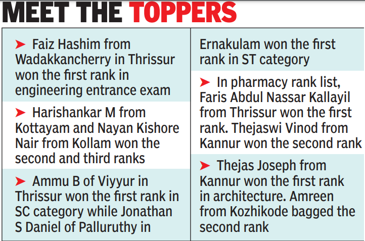 THIRUVANANTHAPURAM: A comparatively higher number of CISCE and CBSE students continued to secure spots in the top 5,000 in Kerala engineering entrance examination when the rank list was announced on Thursday.