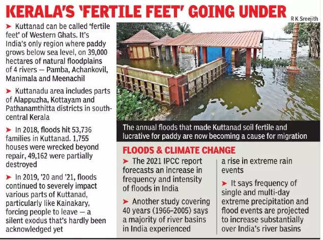 NEW DELHI: Flooding has been an integral part of life in Kuttanad. The seasonal disruption it inflicts is more than compensated for by the mineral-rich silt it leaves behind in what has become the “rice bowl” of Kerala. But over the last decade, and more conspicuously since 2018, flooding has become regular and, worse, the water doesn’t drain.
