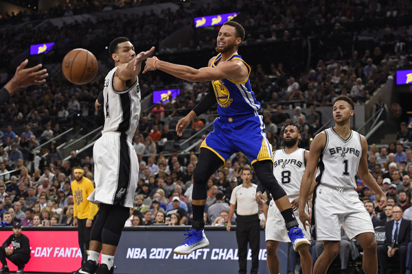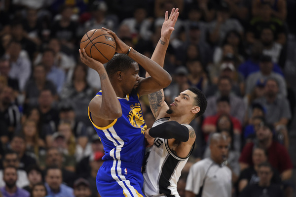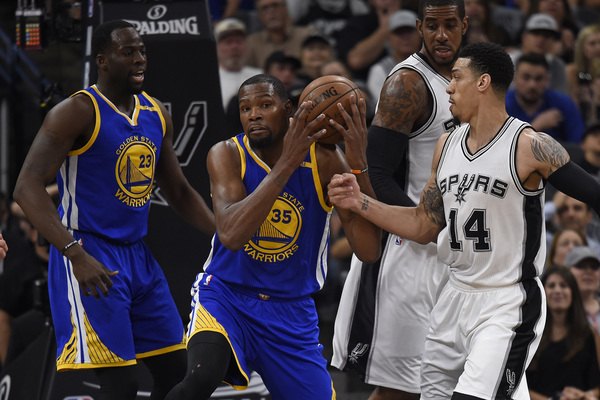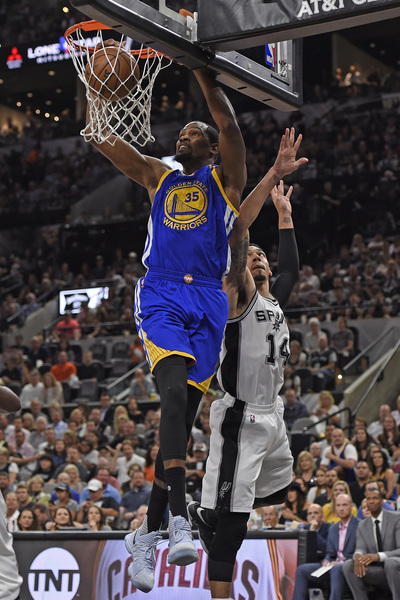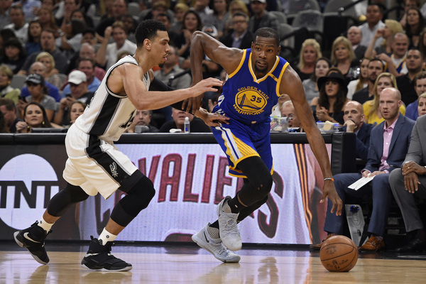 On the next two possessions, he sharply cut backdoor and finished off two layups set up by David West, who continued his passing renaissance with five assists in 18 minutes. One of those Durant layups included a Jonathon Simmons foul. He made the free throw, giving him seven points in 70 seconds.