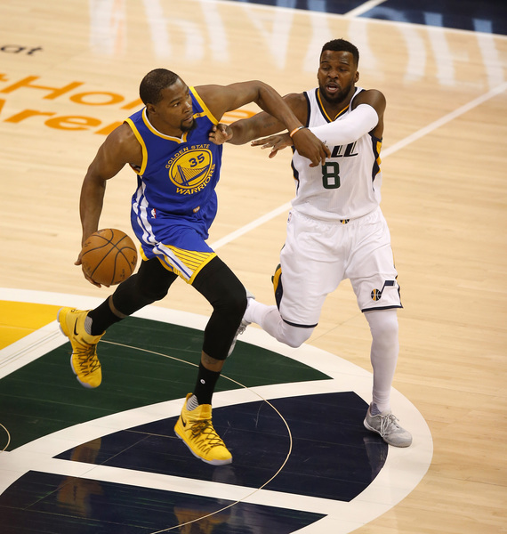 After a slow start to the second quarter, which included the Jazz taking its first lead of the series, Durant returned and the Warriors went iso ball with him in the mid-post. Three times, they delivered it to him 15 feet from the hoop and then cleared out. Three straight times, he abused the smaller Gordon Hayward (team-high 29 points), drilling unblockable fadeaways over his outstretched arms. At one point, Durant had 27 points and no other Warrior had more than seven.