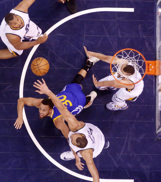 Steph Curry _ cold most of the night _ jumpstarted the closing spurt. After a kickback pass to Andre Iguodala, Curry (23 points) weaved around a screen and, when Rodney Hood failed to recognize and help in time, Curry jetted off the down screen, caught and planted a wing 3 to put the Warriors up 89-84.