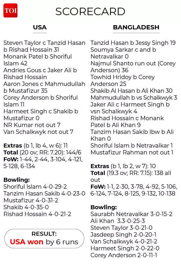 Ali Khan's late resurgence in the game was pivotal. After narrowly surviving a run-out, Shakib managed two boundaries but eventually succumbed to Khan, triggering a collapse. Khan's consistent bowling in the final overs ensured no comeback from the Bangladesh tailenders, sealing a historic win for the USA.