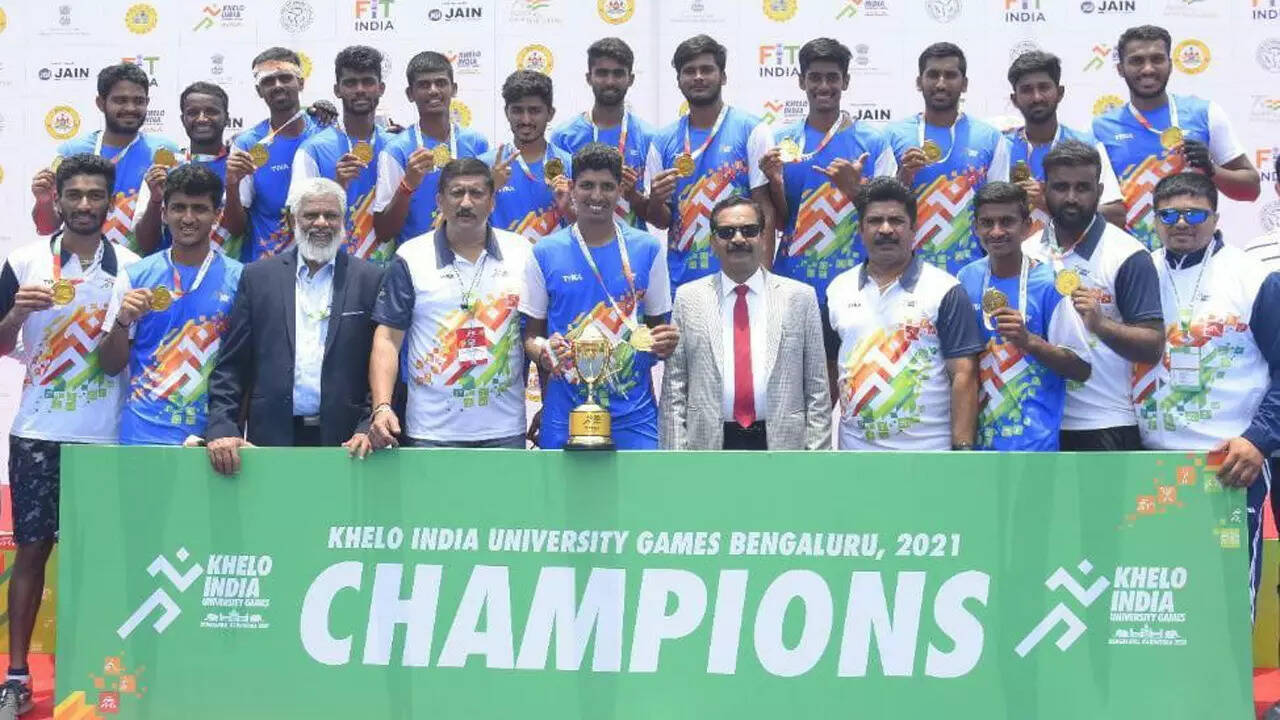 BENGALURU: Harish Mutagar continued with his golden run in the Khelo India University Games on Sunday. The 23-year-old struck two goals to power Bengaluru City University to their second consecutive title. In the final played at the KSHA stadium, the defending champions blanked Guru Nanak Dev University, Amritsar 3-0.
