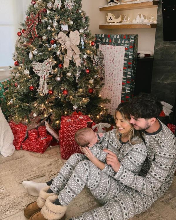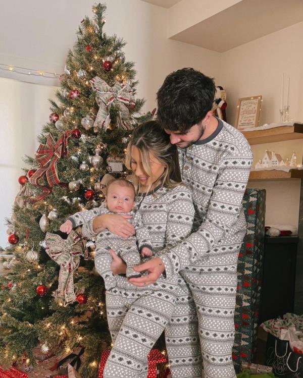 In a heartwarming scene marking their first family Christmas, popular social media personality Kian Lawley and his partner, along with their adorable baby, were captured in a series of photos that are sure to melt hearts. The couple, dressed in matching grey Christmas-themed onesies, can be seen sprawled on the floor amidst a backdrop adorned with a beautifully decorated festive tree and neatly wrapped presents. Their infectious smiles radiate the pure joy of the season, encapsulating a moment of shared happiness and familial bliss.
