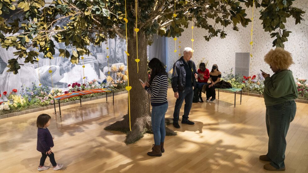Kristen Dowell, of Oak Park, said she enjoys the sculpture on display on the building’s upper levels and was particularly drawn this weekend to the “Freedom Square: Black Girlhood Altar” exhibit.