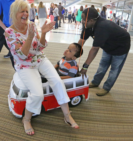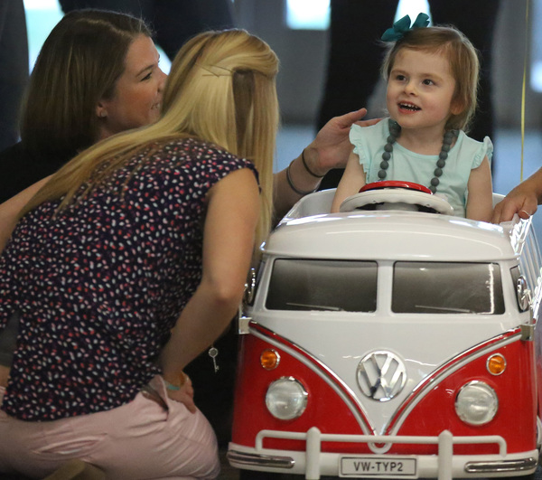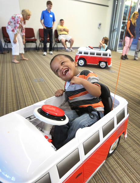 "Pure joy," Meggan Jackson said of her daughter's freedom to motor across the room in her mini Volkswagen bus. "This is a first for her. ... Now she can go wherever she wants to go."