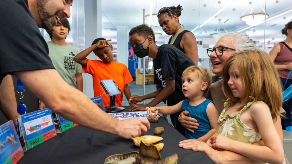 Amid a colorful sea of Lego bricks, children and their parents on Tuesday attended a dinosaur-themed Lego Club event at the Harold Washington Library, sculpting assorted figures and voting to bestow a name upon the Field Museum’s newest dinosaur display.