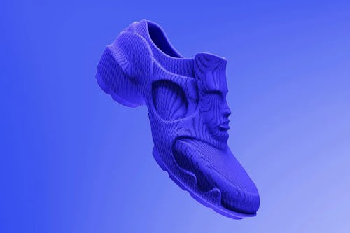 Creating a heel as its 3D-printed shoe debut of choice is pretty on par with KidSuper’s design philosophies. The brand is as whimsical as it is streetwear, masterfully using color and flowy silhouettes throughout its gender-fluid collections. And without the traditional shoemaking process that uses glue, yarn, and other unsustainable materials, the KidSuper kicks offer a more circular approach to footwear construction.