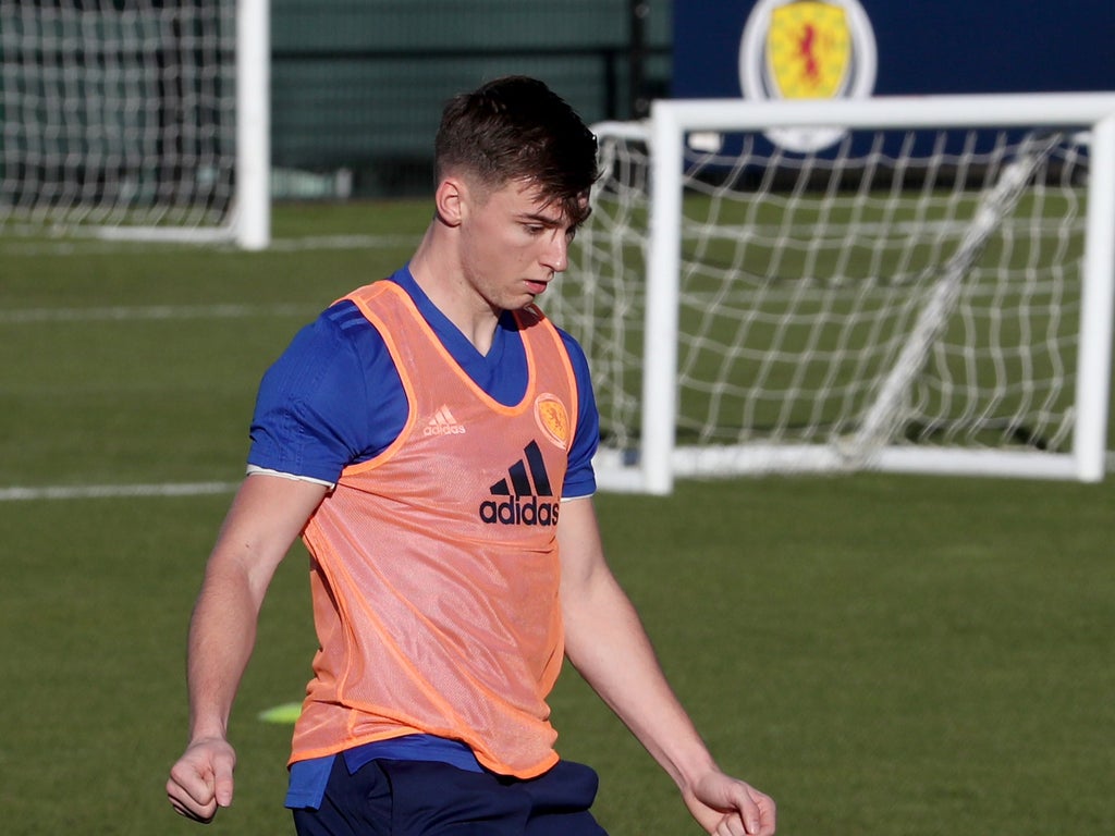 Kieran Tierney joined his Scotland team-mates for training 24 hours after missing their Euro 2020 opener.