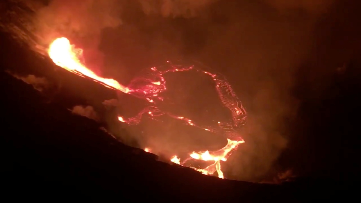 A picture from the USGS showed Kilauea's summit illuminated by the hot lava with a plume of steam and gas bursting out of the volcano.