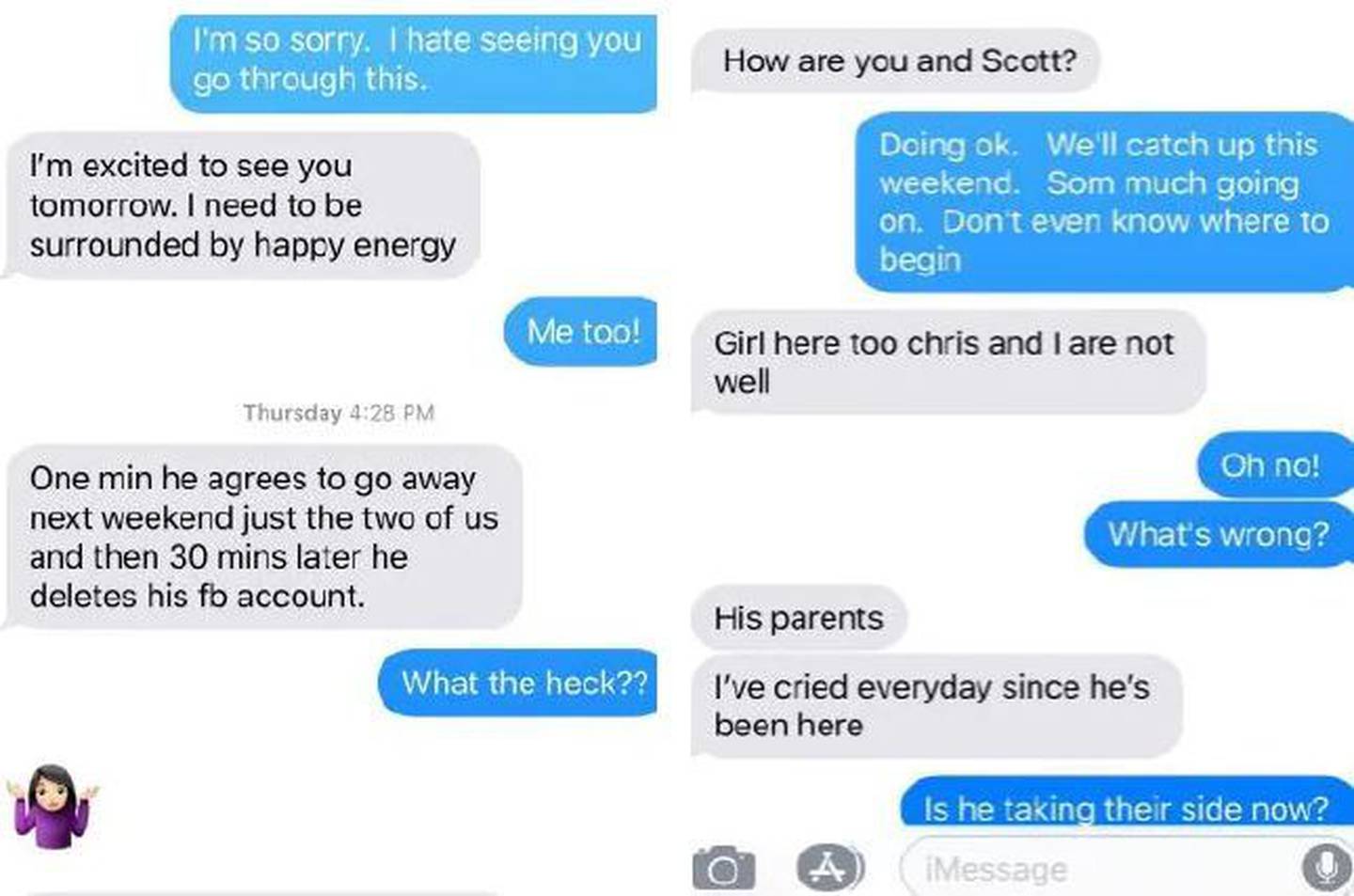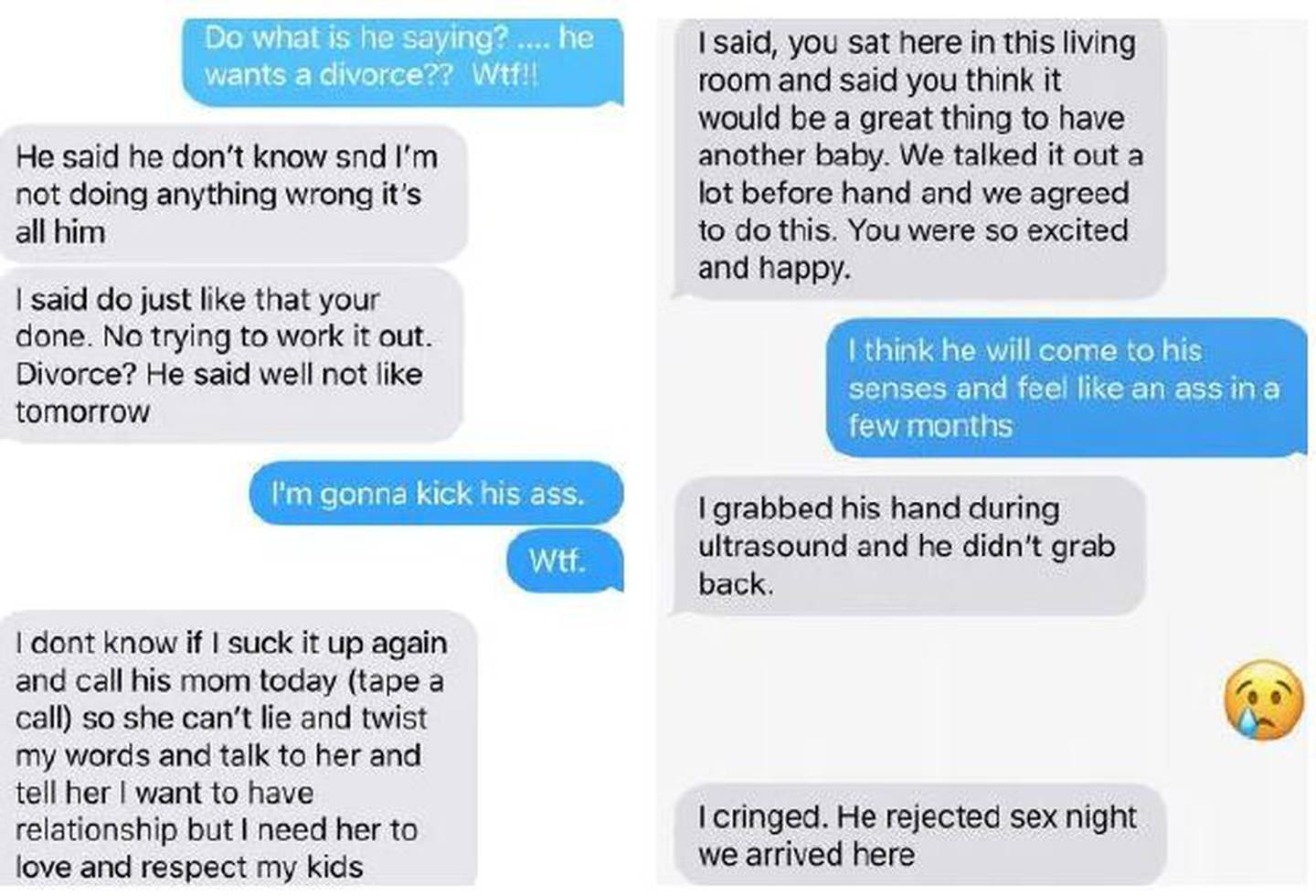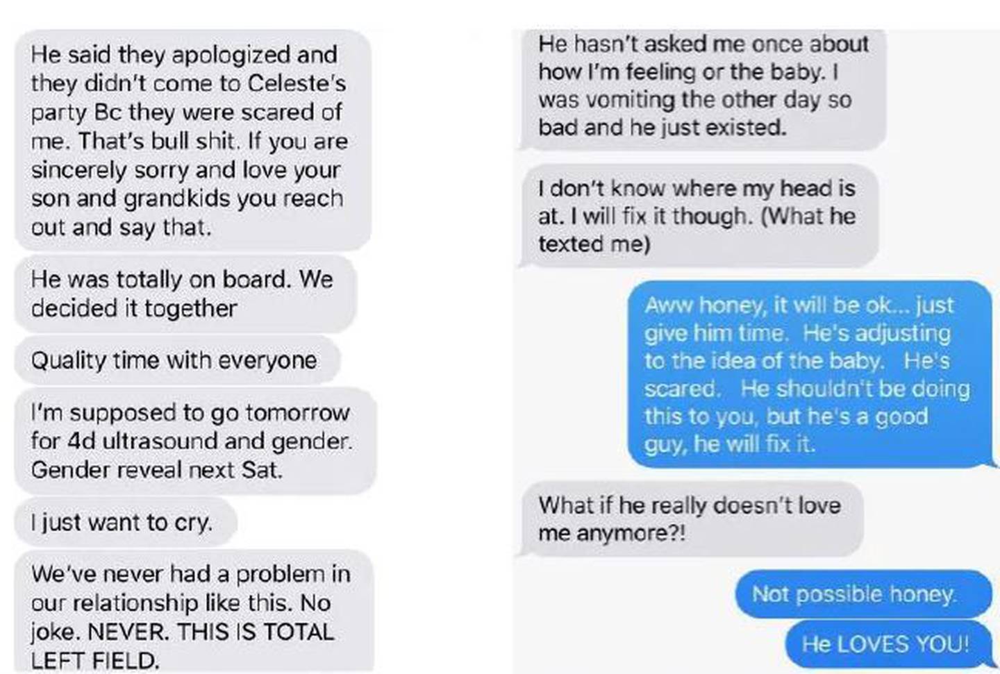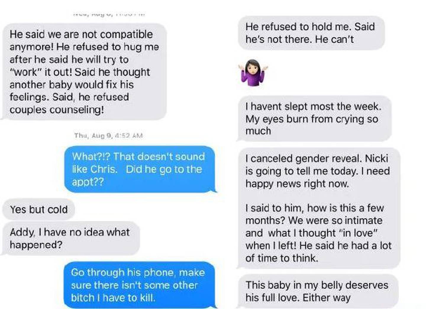 He would not have sex with her, and when she took his hand during an ultrasound, he didn't hold it back. "He has changed," she wrote, in a chillingly prophetic text. "I don't know who he is."