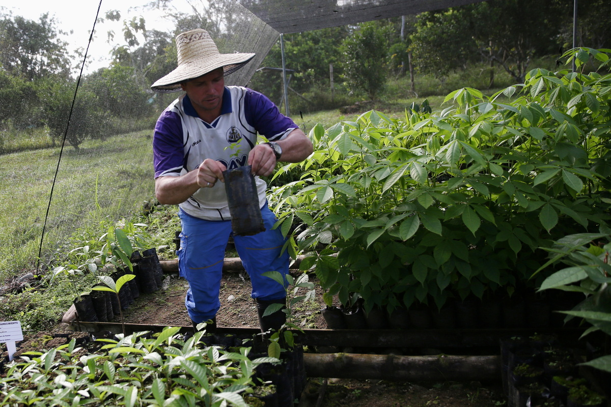 Former guerrilla Jorge Santofimio leads a network of tree nurseries in Putumayo and two other provinces, growing saplings meant to restore damaged parts of the Amazon, with help from the U.N. Development Program.