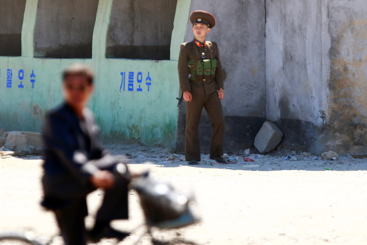 A man cycles past a North Korean soldier in Sinuiju, North Korea, on the 70th anniversary of North Korea's foundation, September 9, 2018. Picture taken from the Yalu river which separates North Korea and China. REUTERS/Jacky ChenSoldiers march during a military parade marking the 70th anniversary of North Korea's foundation in Pyongyang, North Korea, September 9, 2018. REUTERS/Danish SiddiquiNorth Koreans tour on a vessel on the Yalu river outside Sinuiju, North Korea, opposite the Chinese border city of Dandong, on the 70th anniversary of North Korea's foundation, September 9, 2018. REUTERS/Jacky ChenSoldiers march during a military parade marking the 70th anniversary of North Korea's foundation in Pyongyang, North Korea, September 9, 2018. REUTERS/Danish Siddiqui