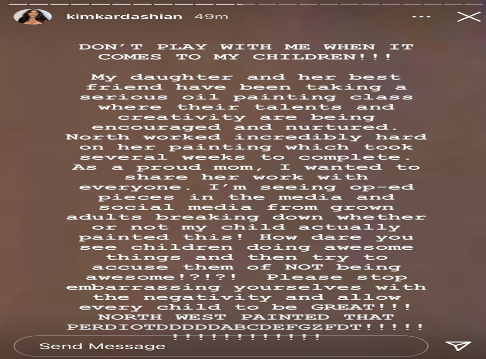 However, now Kardashian West has responded to the criticisms, stressing that North did in fact create the painting.