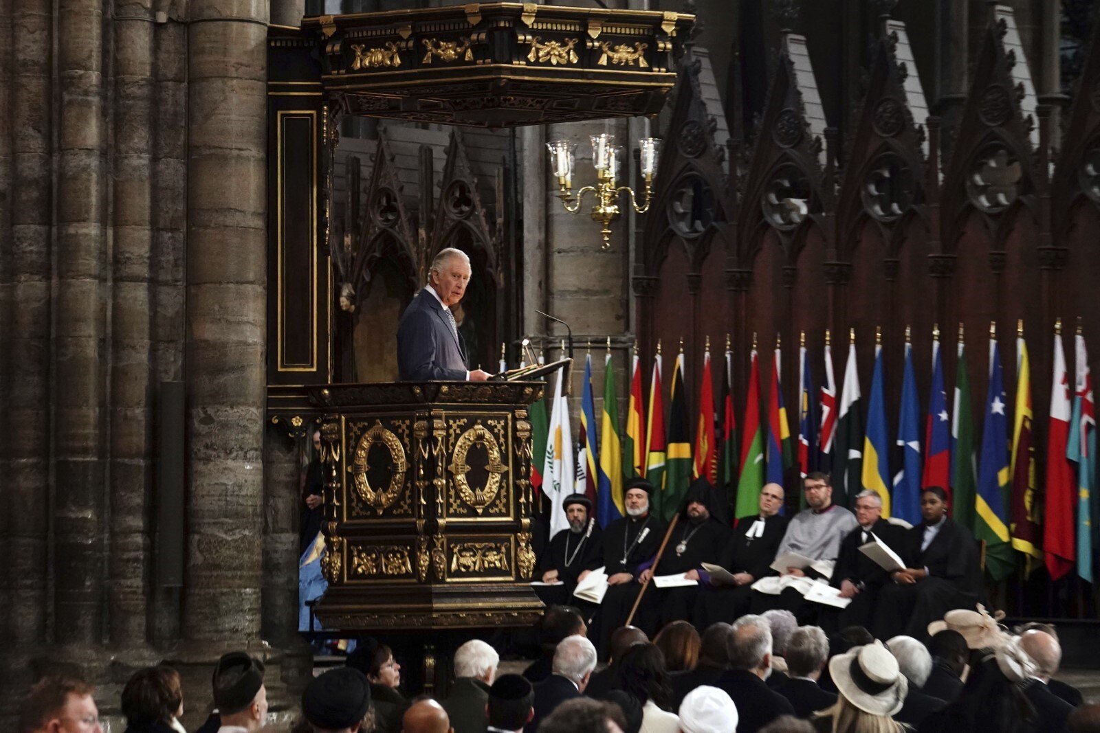 He made his address from the great pulpit in Westminster Abbey, the venue that will host his Coronation in under two months' time to around 2,000 representatives from the 56 countries in the Commonwealth, including Australia's new High Commissioner to the UK Stephen Smith.