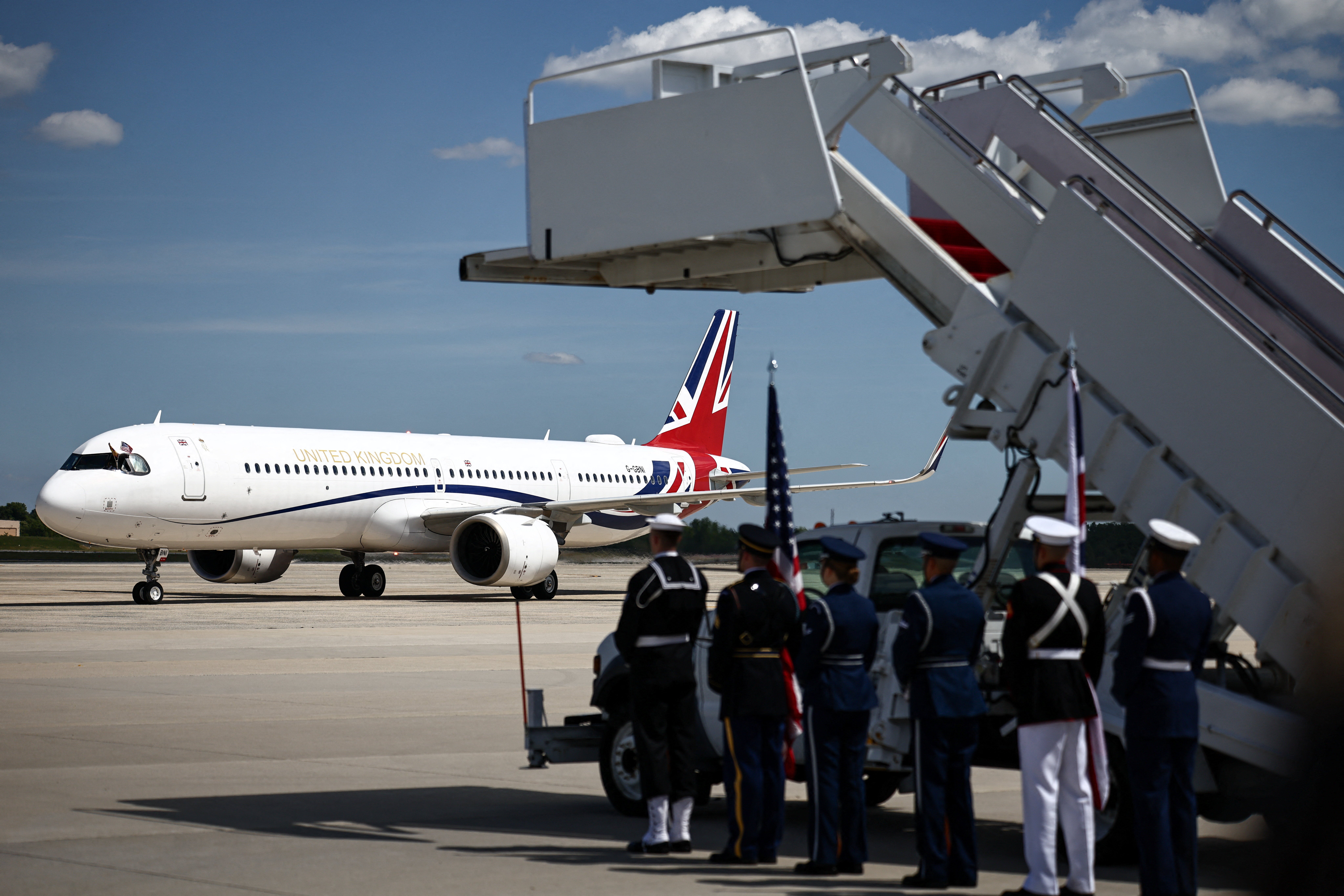 Charles, joined by the Queen, touched down at the Joint Base Andrews air base in Maryland, a short distance from Washington, in the last few moments.
