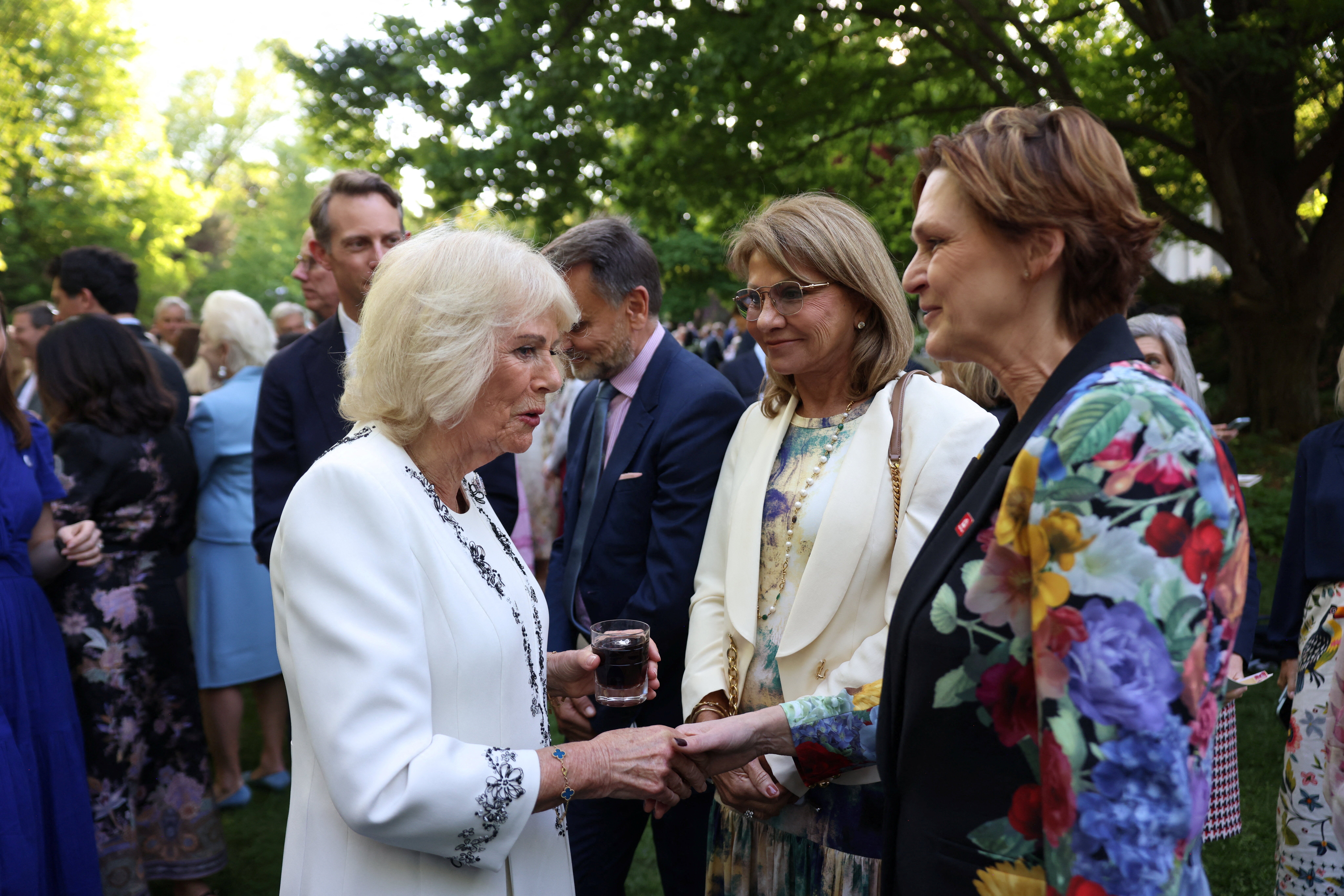 07:53 , Holly EvansDuring the open-air soiree in the gardens of the official residence of Sir Christian Turner, the UK’s ambassador to the US, Camilla chatted to charity bosses working to combat child exploitation and sexual abuse.